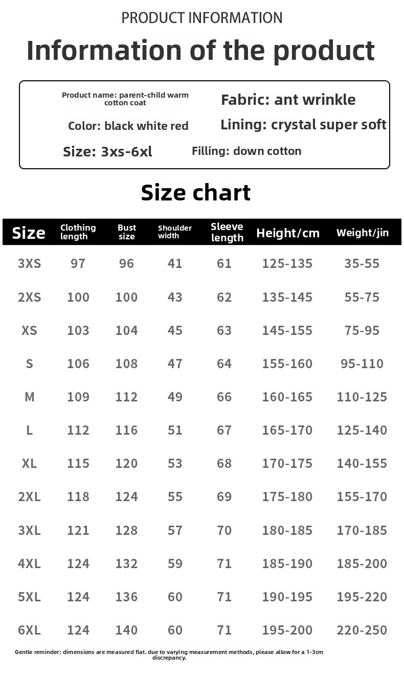 Sizes: 3XS, 2XS, XS, S, M, L, XL, 2XL, 3XL, 4XL, 5XL, 6XL.
