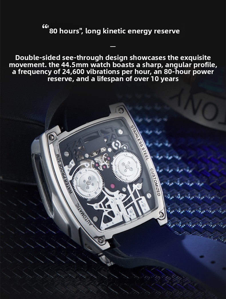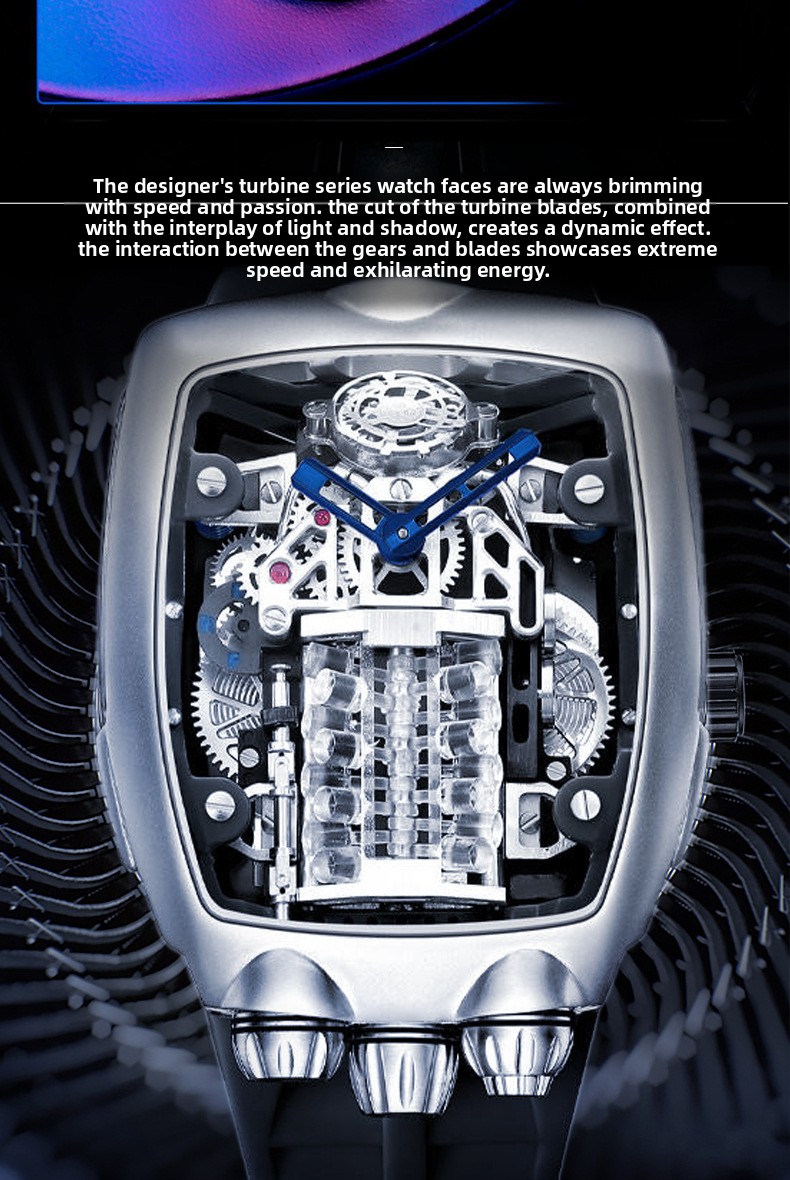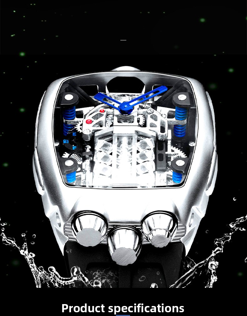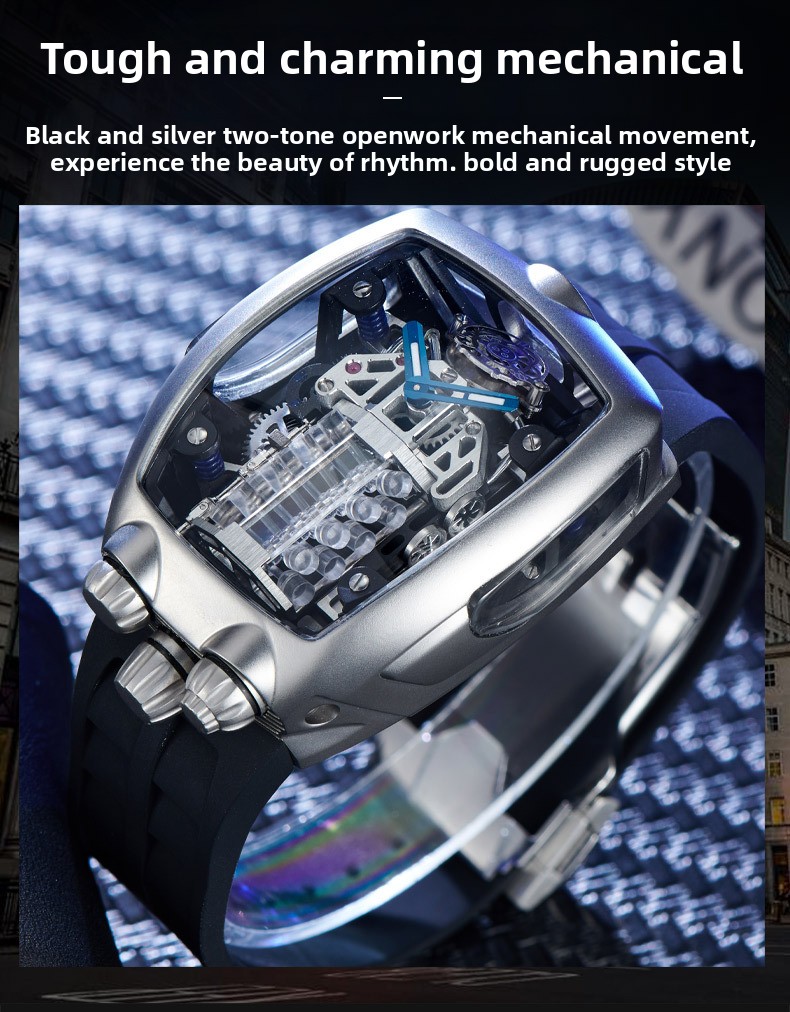 Unique Design: Barrel-shaped dial with an engine-inspired design, giving it a distinctive and masculine look.