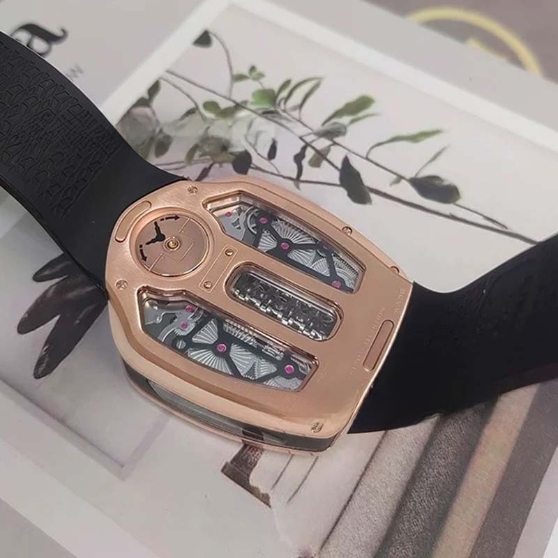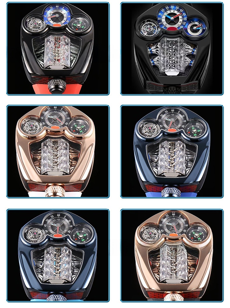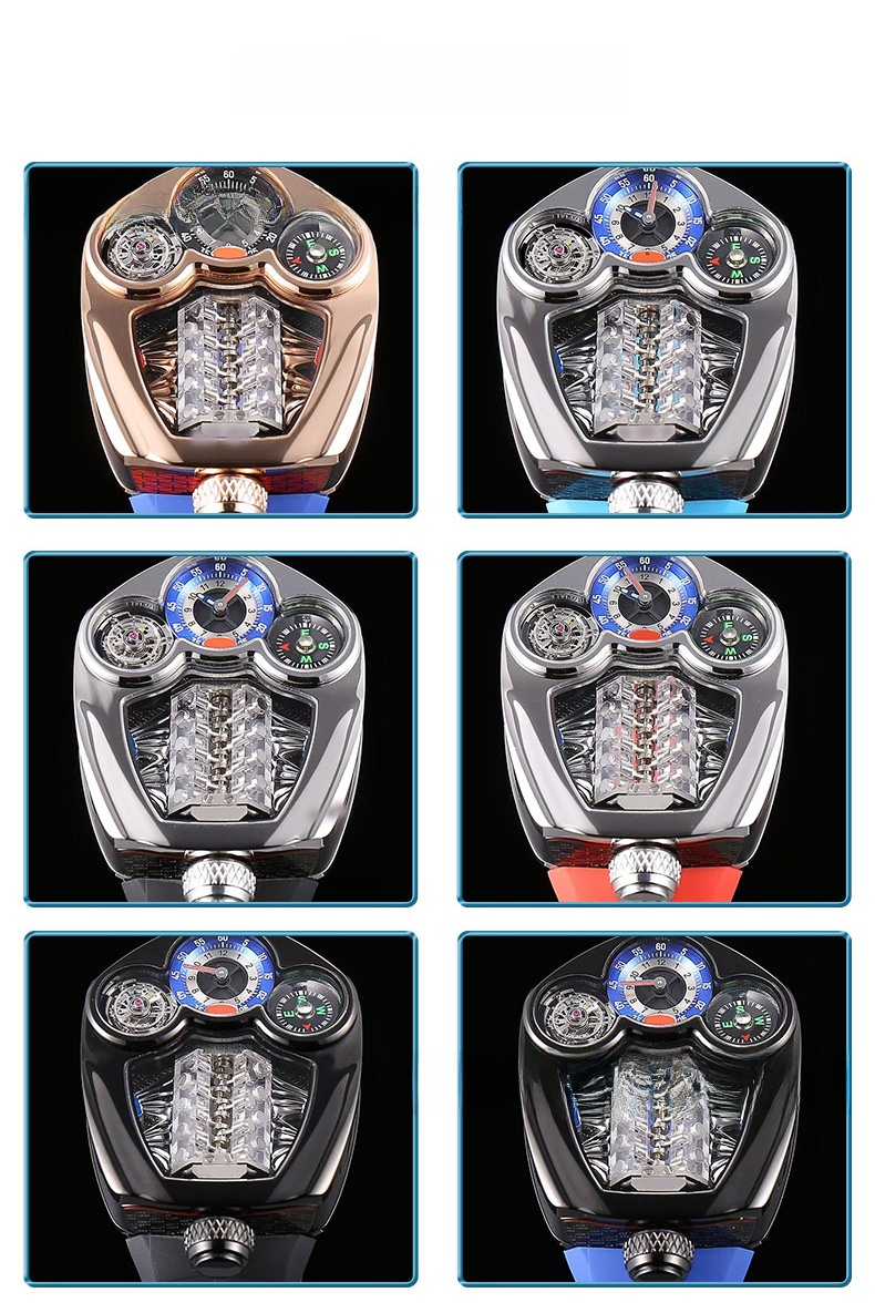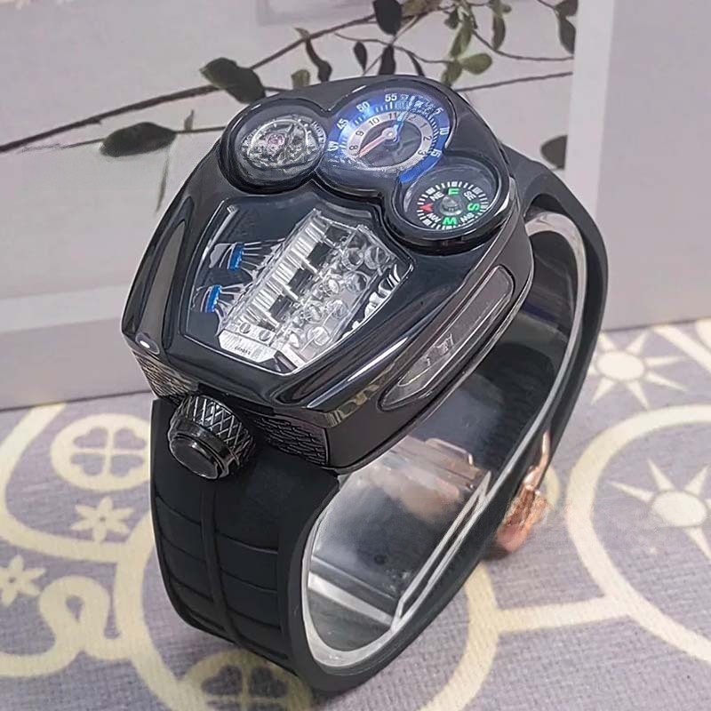 Engine-inspired Design: Unique watch face inspired by Bugatti engine, showcasing mechanical aesthetics.