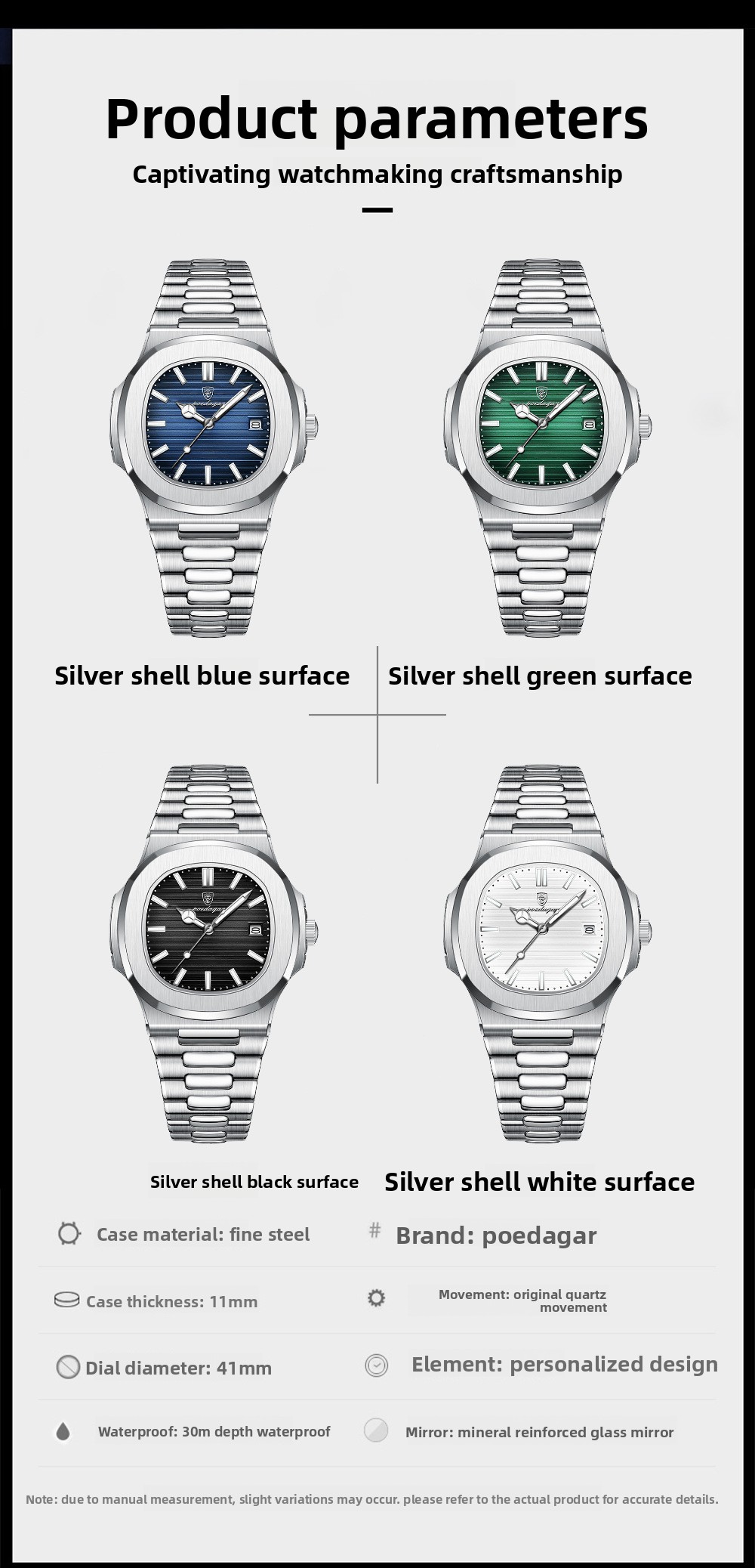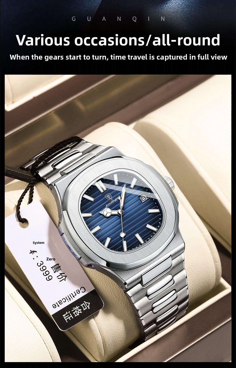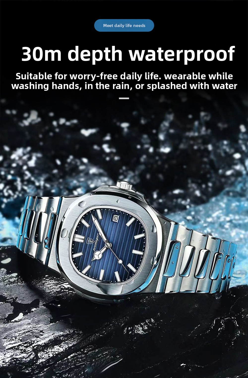 Waterproof: Features 50m waterproof performance, suitable for daily wear.