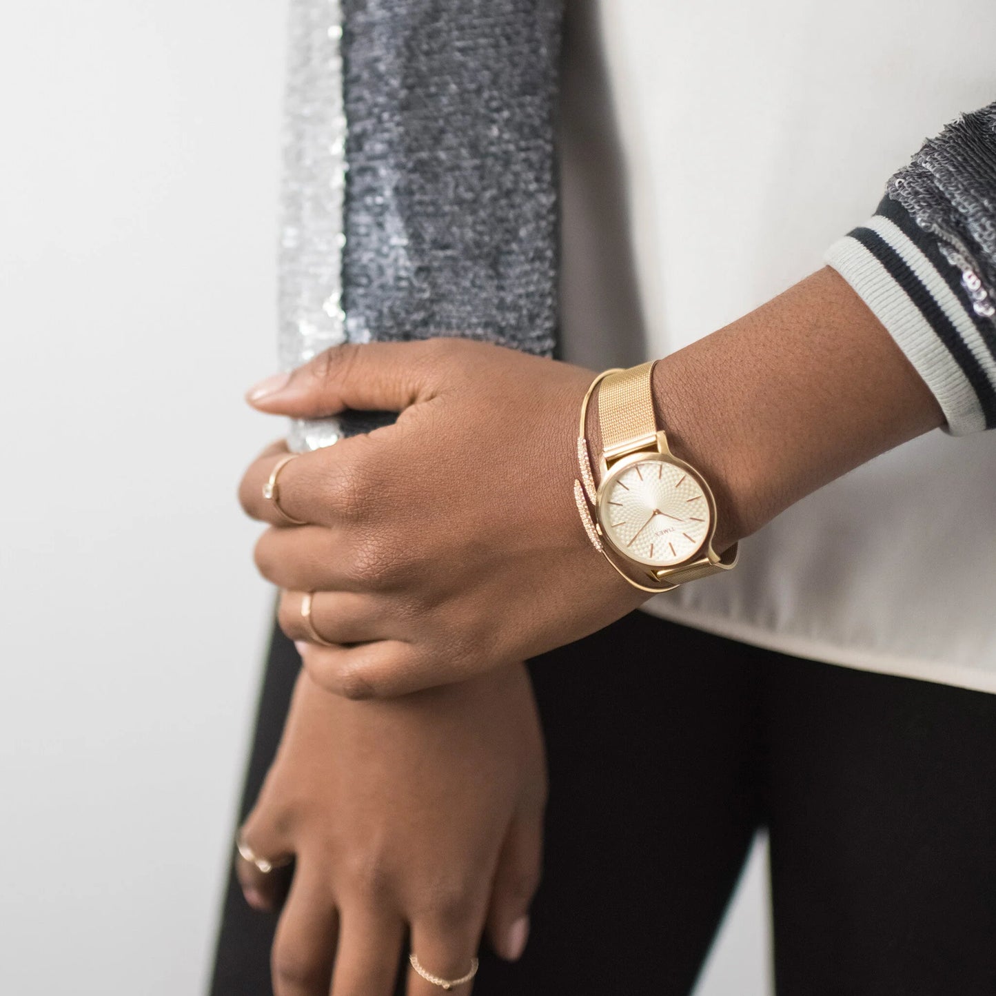 We all know the value of time. But it's not about how much you make, it's about how much you have. How do you use your time? Timex wants to be your partner for life, so we have created a watch to suit your style with an original look designed with craftsmanship and detail. With a Silver Stainless Steel band and a Silver dial, it's made of Brass which makes it very durable and reliable. It has a Brass Round Silver case with a diameter of 34 mm it will be a great watch for any occasion.