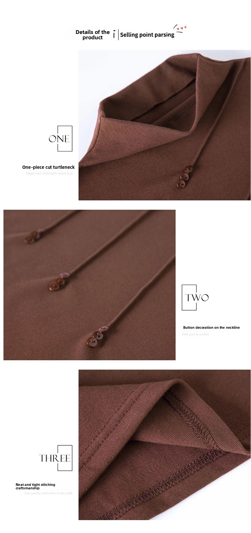Neckline: Half turtleneck