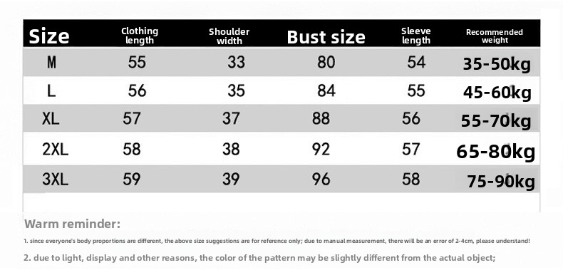 Sizes: M (35-50kg), L (45-60kg), XL (55-70kg), XXL (65-80kg), 3XL (75-90kg)