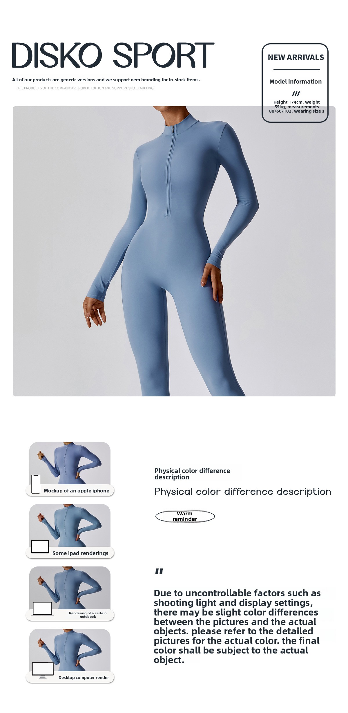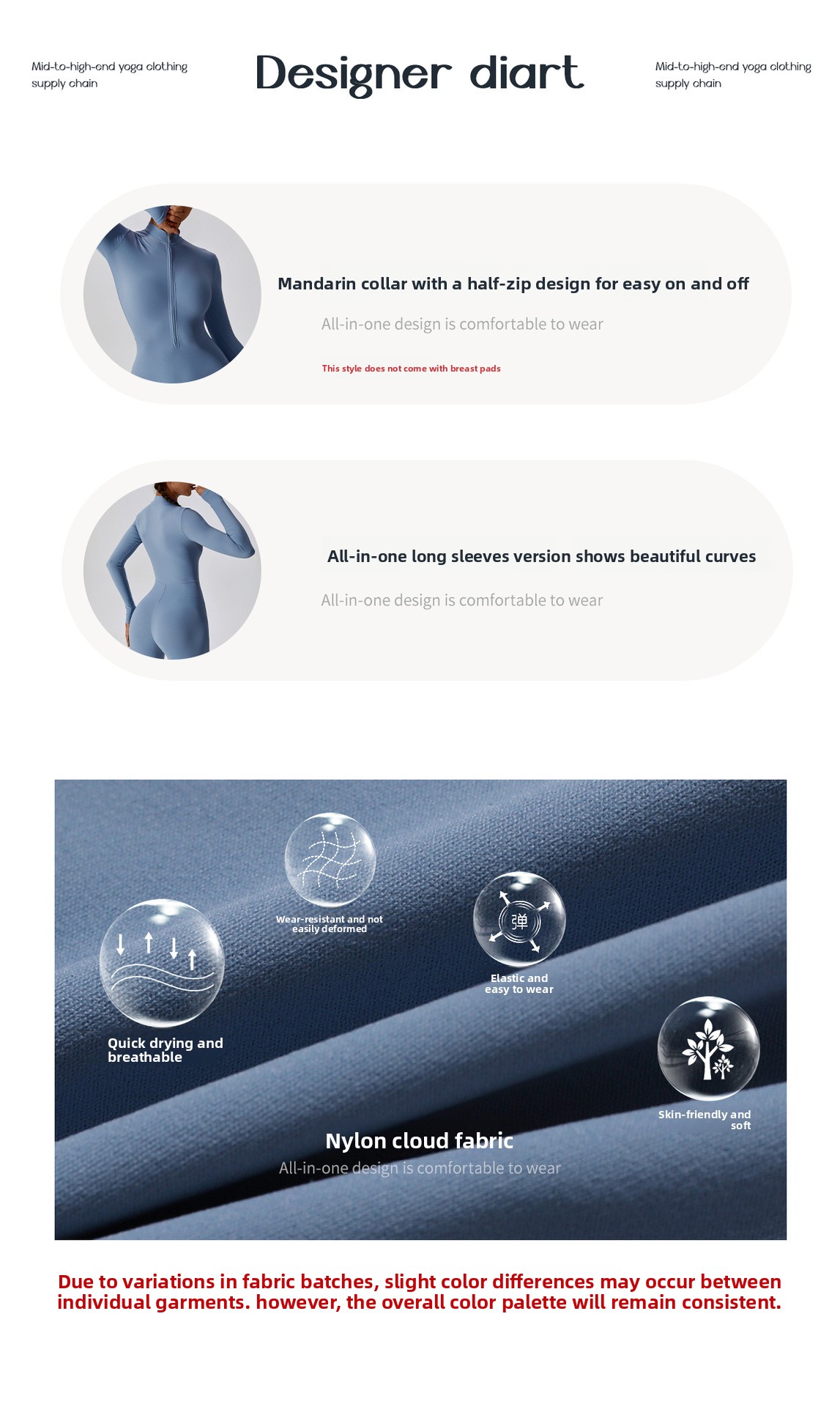 Zipper Naked Long-sleeved Yoga One-piece Suit